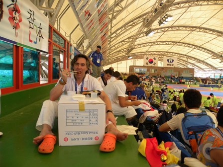 Despues de 4,30 h. a Helsinki, alli 2,30, y despues 8,30 a Seoul, donde nos estaba esperando mi maestro (Uh Soo Il), al cual ya debo agradecer lo buen anfitrion que fue con nosotros, ya que se nos dieron todo tipo de facilidades tanto en la competicion, en los viajes, en nuestra estancia en Seoul.