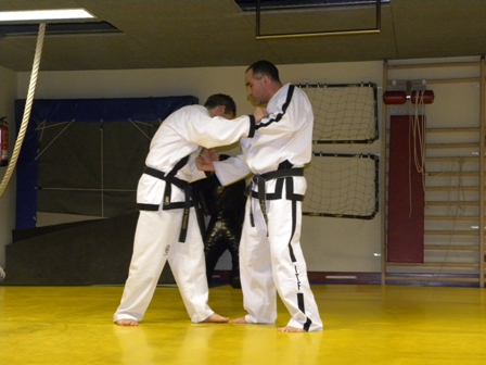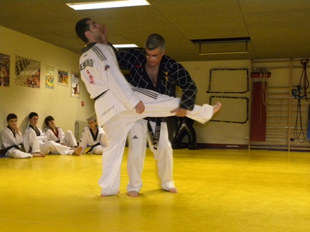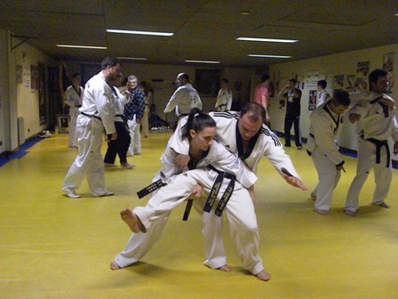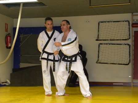 El ENCUENTRO MARCIAL se vio enmarcado en todo momento dentro del protocolo que debe existir en la practica del Tae Kwon-Do recordando asi valores como la concentración, orden en la clase, pautas a seguir en el transcurso de la misma. El objetivo inicial a tratar en la parte de la defensa personal (Hosinsul) era la presentacion y comentario de tecnicas inmediatas directas ante un ataque, siendo el maestro Soto quien tomo la iniciativa, esta presentacion inicial nos llevaria a la combinacion de tecnicas pudiendo basarnos inicialmente en la esquiva, en la defensa o en el ataque directo, y pudiendo disfrutar de un arsenal verdaderamente amplio de tecnicas que cada uno de los maestro presento desde su vision particular.